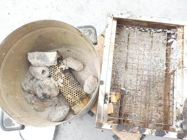 しっかりと水をかけたり、火消し壺にいれ火元を処理してください。