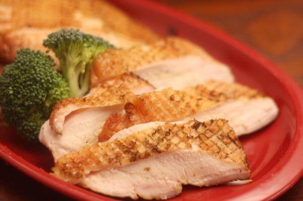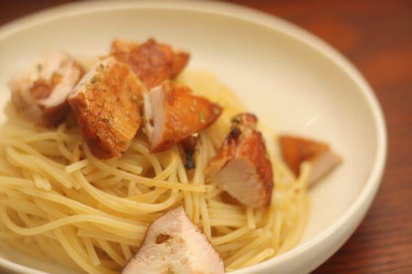 ソフトな食感が好きなひとは、焼く時間を短くしてもかまいませんが、かならず安全基準を超える熱と時間以上は鶏むね肉に火をいれてください。
