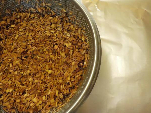 そこで、燻製をはじめる30分ほどまえにスモークチップを水に漬けておきます。
