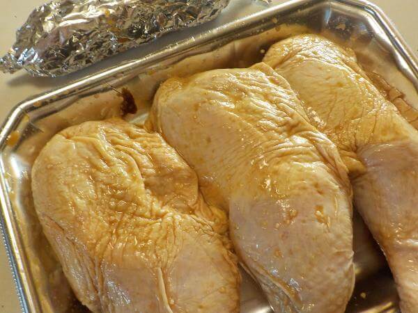 チキンレッグを一昼夜、しょうゆこうじに漬けこんでおきました。