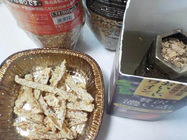 いか天をとりだしやすいように、なにか容器にいれて燻したほうがよいです。