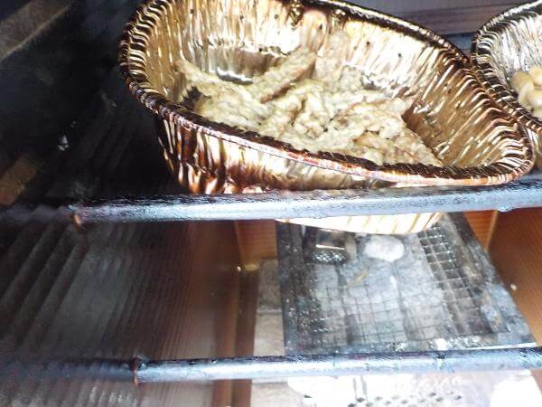 もしくは専用の調理器具にいれ炭火のうえにくべます。