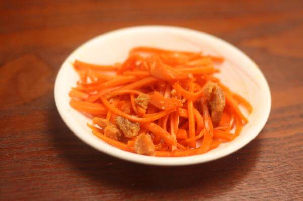バターとニンジンをいため、燻製たらこをくわえたシリシリ。