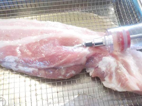 確信しましたね、風味にとぼしい豚肉には果汁と注射するべきだと。