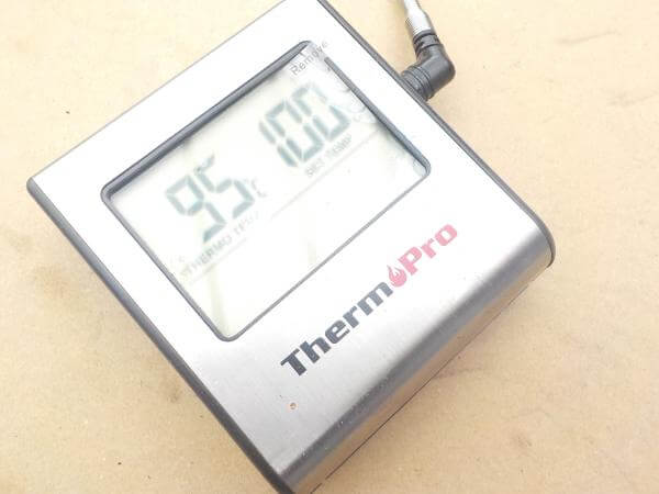 温度計があると安心です。もっとも火元から離れた位置の肉にセンサーをさしておきましょう。