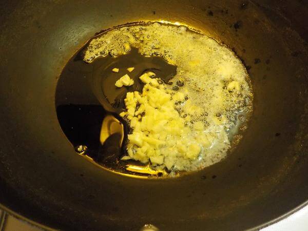 バターを弱火でとかし、そしてみじんぎりのニンニクをくわえ香りをひきだします。