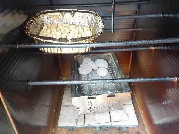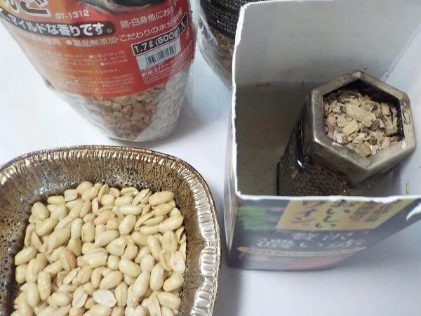 バターピーナッツをとりだしやすいように、なにか容器にいれて燻したほうがよいです。