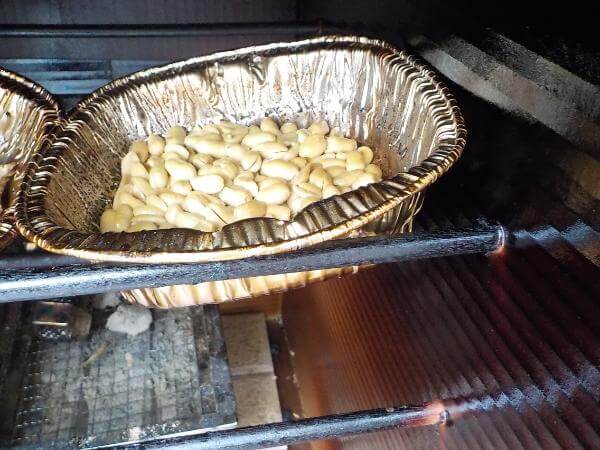 お菓子、おつまみコーナーに置かれているバターピーナッツをそのまま燻し焼きあげます。