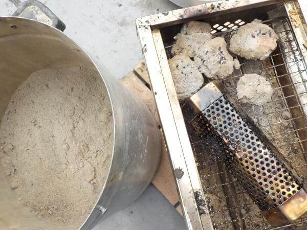もしくは専用の調理器具にいれ炭火のうえにくべます。