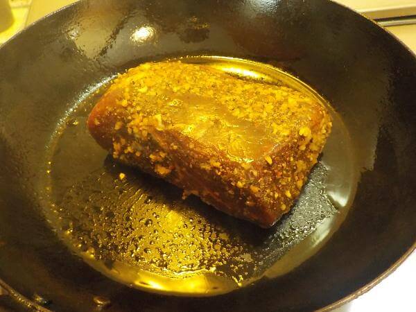 赤い血がしみでてこず、柔らかい燻製といった質感です。