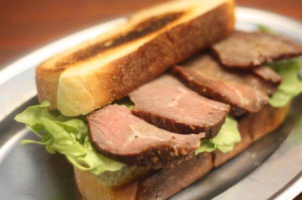 燻煙の香りをまとったローストビーフです。サンドイッチにしてもすこし豪華な香りをまわりにふりまいてくれます。
