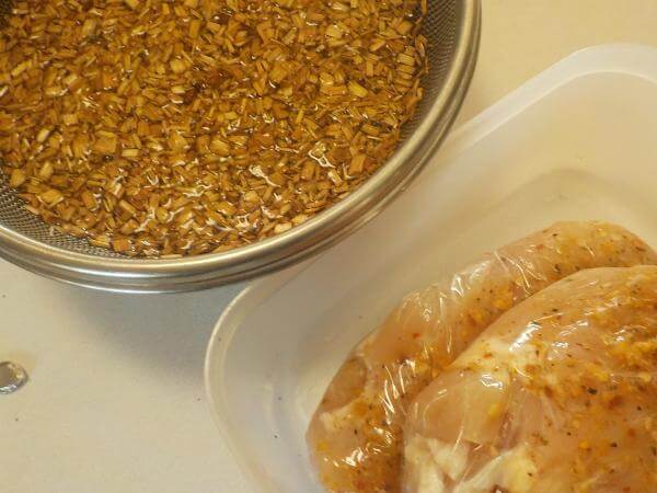 そこで、燻製をはじめる30分ほどまえにスモークチップを水に漬けておきます。