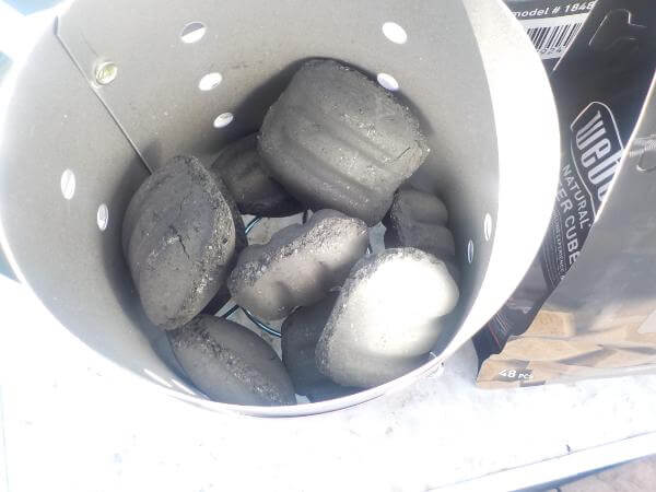 そして、チムニースタータを着火剤のうえに設置する。