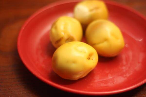 ジャガイモじゃないよ、ゆで卵の燻製だよ。